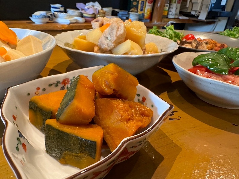 家庭料理みおとでは、家庭料理の中でも、お気軽に楽しんでいただけるようにおばんざいのご提供もしています。日本食といえば、季節ごとの食材にこだわりながらも変わらない優しい味があるかと思います。みおとでも、「和」の中に変わらない優しいお味や食材にこだわりながら皆様がより健康に過ごせるように気を配って作らせていただいております。一度みおとのおばんざいをお召し上がりください。